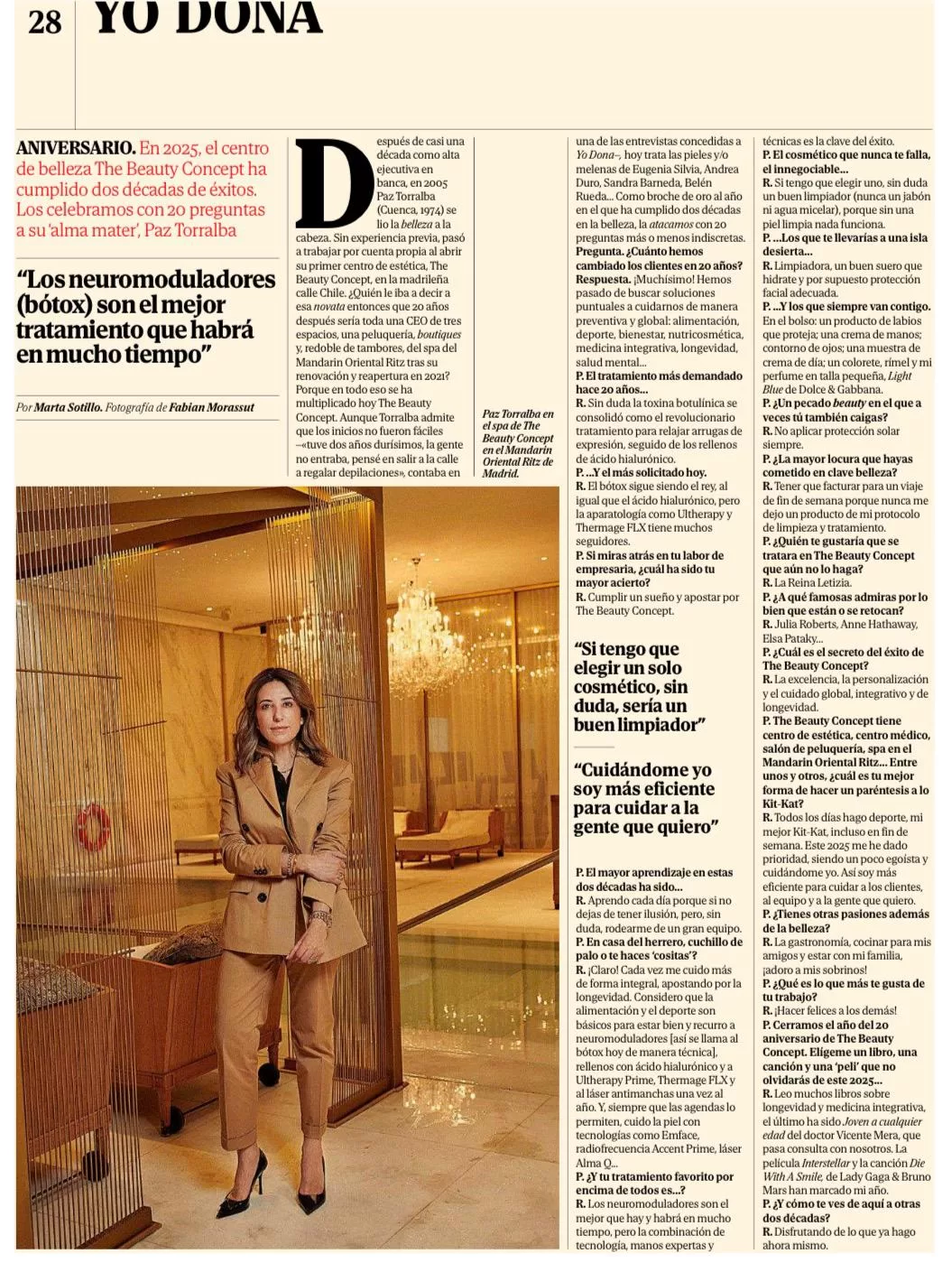 Aunque Torralba admite que los inicios no fueron fáciles –«tuve dos años durísimos, la gente no entraba, pensé en salir a la calle a regalar depilaciones», contaba en una de las entrevistas concedidas a Yo Dona–, hoy trata las pieles y/o melenas de Eugenia Silvia, Andrea Duro, Sandra Barneda, Belén Rueda… Como broche de oro al año en el que ha cumplido dos décadas en la belleza, la atacamos con 20 preguntas más o menos indiscretas.