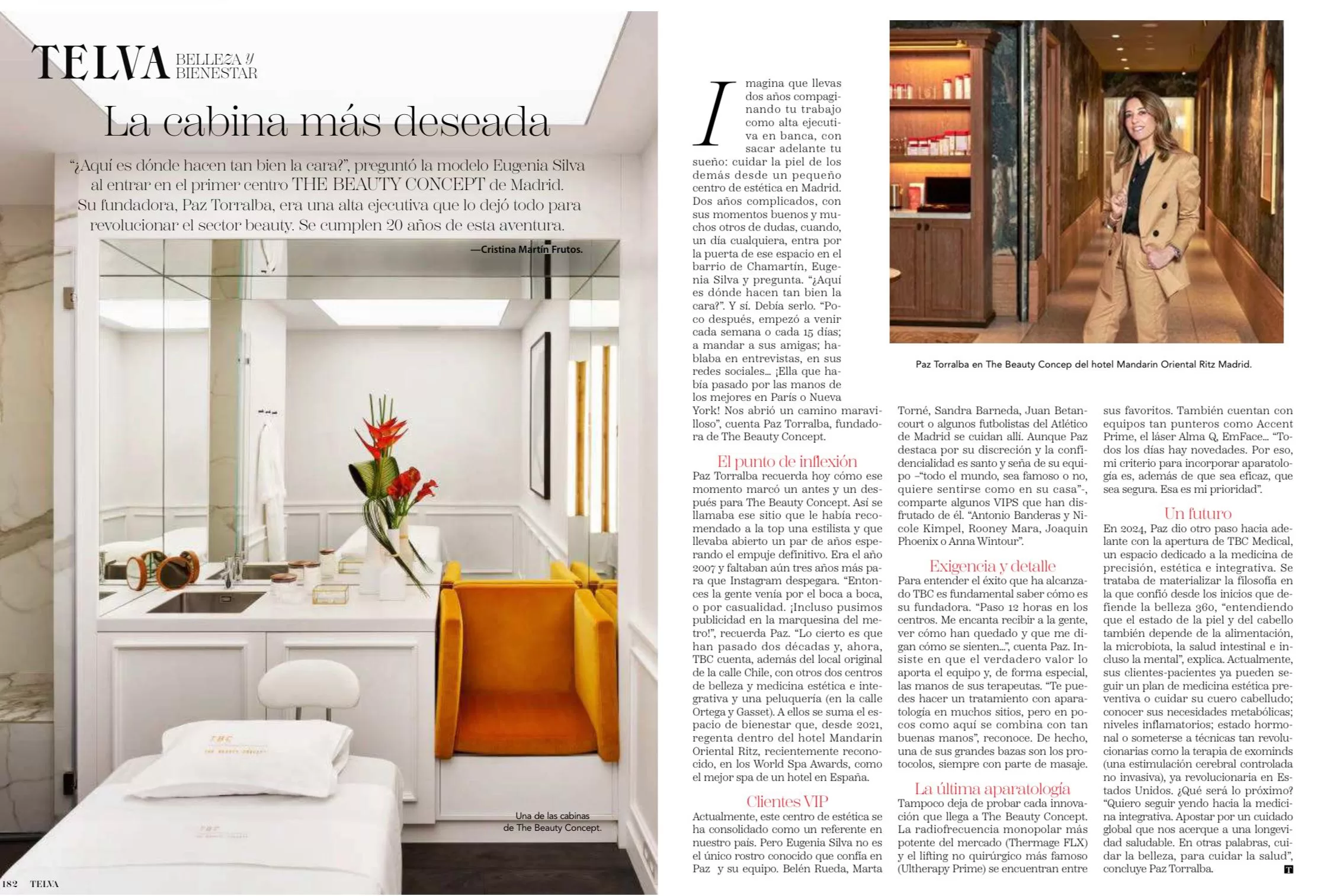 “Lo cierto es que han pasado dos décadas y, ahora, TBC cuenta, además del local original de la calle Chile, con otros dos centros de belleza y medicina estética e integrativa y una peluquería (en la calle Ortega y Gasset). A ellos se suma el espacio de bienestar que, desde 2021, regenta dentro del hotel Mandarin Oriental Ritz, recientemente reconocido, en los World Spa Awards, como el mejor spa de un hotel en España. Clientes VIP