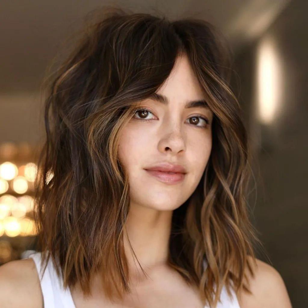 Wavy curtain bangs