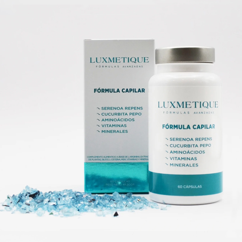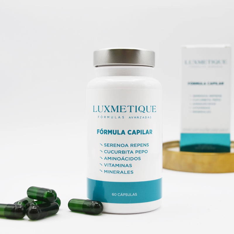 L-arginina; extracto seco de fruto de sabal (Serenoa repens (W.Bartram) Small) 45 % ácidos grasos; extracto seco de semillas de calabaza (Cucurbita pepo L.; cápsula [agente de recubrimiento (hidroxipropilmetilcelulosa);colorante (complejos cúpricos de clorofilinas)]; clorhidrato de L-cisteína; metilsulfonilmetano (MSM); extracto seco de tallo de bambú (Bambusa vulgaris Schrad.) 85 % sílice; citrato de zinc; patente de hierro de máxima biodisponibilidad y absorción; agente de carga (celulosa microcristalina); nicotinamida; antiaglomerantes (dióxido de silicio, sales magnésicas de ácidos grasos); colecalciferol; citrato cúprico; riboflavina; selenito de sodio; Vitamina D y Biotina.
