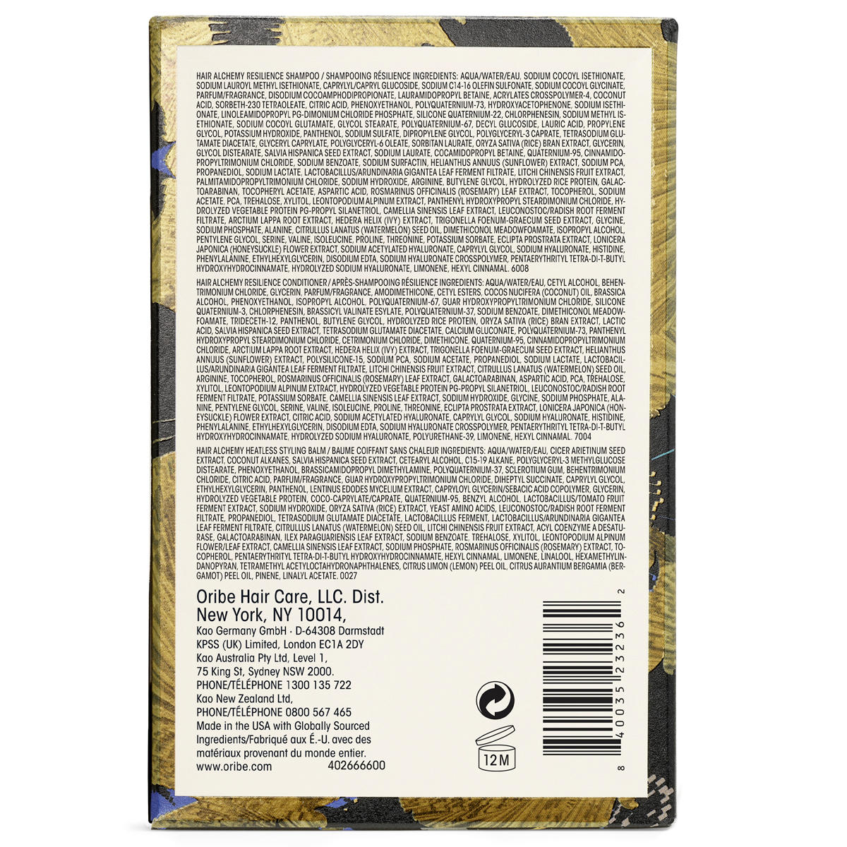 Heatless Balm: Aqua/Water/Eau, Cicer Arietinum Seed Extract, Coconut Alkanes, Salvia Hispanica Seed Extract, Cetearyl Alcohol, C15-19 Alkane, Polyglyceryl-3 Methylglucose Distearate, Phenoxyethanol, Brassicamidopropyl Dimethylamine, Polyquaternium-37, Sclerotium Gum, Behentrimonium Chloride, Citric Acid, Parfum/Fragrance, Guar Hydroxypropyltrimonium Chloride, Diheptyl Succinate, Caprylyl Glycol, Ethylhexylglycerin, Panthenol, Lentinus Edodes Mycelium Extract, Capryloyl Glycerin/Sebacic Acid Copolymer, Glycerin, Hydrolyzed Vegetable Protein, Coco-Caprylate/Caprate, Quaternium-95, Benzyl Alcohol, Lactobacillus/Tomato Fruit Ferment Extract, Sodium Hydroxide, Oryza Sativa (Rice) Extract, Yeast Amino Acids, Leuconostoc/Radish Root Ferment Filtrate, Propanediol, Tetrasodium Glutamate Diacetate, Lactobacillus Ferment, Lactobacillus/Arundinaria Gigantea Leaf Ferment Filtrate, Citrullus Lanatus (Watermelon) Seed Oil, Litchi Chinensis Fruit Extract, Acyl Coenzyme A Desaturase, Galactoarabinan, Ilex Paraguariensis Leaf Extract, Sodium Benzoate, Trehalose, Xylitol, Leontopodium Alpinum Flower/Leaf Extract, Camellia Sinensis Leaf Extract, Sodium Phosphate, Rosmarinus Officinalis (Rosemary) Extract, Tocopherol, Pentaerythrityl Tetra-di-t-butyl Hydroxyhydrocinnamate, Hexyl Cinnamal, Limonene, Linalool, Hexamethylindanopyran, Tetramethyl Acetyloctahydronaphthalenes, Citrus Limon (Lemon) Peel Oil, Citrus Aurantium Bergamia (Bergamot) Peel Oil, Pinene, Linalyl Acetate. Shampoo: Aqua/Water/Eau, Sodium Cocoyl Isethionate, Sodium Lauroyl Methyl Isethionate, Caprylyl/Capryl Glucoside, Sodium C14-16 Olefin Sulfonate, Sodium Cocoyl Glycinate, Parfum/Fragrance, Disodium Cocoamphodipropionate, Lauramidopropyl Betaine, Acrylates Crosspolymer-4, Coconut Acid, Sorbeth-230 Tetraoleate, Citric Acid, Phenoxyethanol, Polyquaternium-73, Hydroxyacetophenone, Sodium Isethionate, Linoleamidopropyl PG-Dimonium Chloride Phosphate, Silicone Quaternium-22, Chlorphenesin, Sodium Methyl Isethionate, Sodium Cocoyl Glutamate, Glycol Stearate, Polyquaternium-67, Decyl Glucoside, Lauric Acid, Propylene Glycol, Potassium Hydroxide, Panthenol, Sodium Sulfate, Dipropylene Glycol, Polyglyceryl-3 Caprate, Tetrasodium Glutamate Diacetate, Glyceryl Caprylate, Polyglyceryl-6 Oleate, Sorbitan Laurate, Oryza Sativa (Rice) Bran Extract, Glycerin, Glycol Distearate, Salvia Hispanica Seed Extract, Sodium Laurate, Cocamidopropyl Betaine, Quaternium-95, Cinnamidopropyltrimonium Chloride, Sodium Benzoate, Sodium Surfactin, Helianthus Annuus (Sunflower) Extract, Sodium PCA, Propanediol, Sodium Lactate, Lactobacillus/Arundinaria Gigantea Leaf Ferment Filtrate, Litchi Chinensis Fruit Extract, Palmitamidopropyltrimonium Chloride, Sodium Hydroxide, Arginine, Butylene Glycol, Hydrolyzed Rice Protein, Galactoarabinan, Tocopheryl Acetate, Aspartic Acid, Rosmarinus Officinalis (Rosemary) Leaf Extract, Tocopherol, Sodium Acetate, PCA, Trehalose, Xylitol, Leontopodium Alpinum Extract, Panthenyl Hydroxypropyl Steardimonium Chloride, Hydrolyzed Vegetable Protein PG-Propyl Silanetriol, Camellia Sinensis Leaf Extract, Leuconostoc/Radish Root Ferment Filtrate, Arctium Lappa Root Extract, Hedera Helix (Ivy) Extract, Trigonella Foenum-Graecum Seed Extract, Glycine, Sodium Phosphate, Alanine, Citrullus Lanatus (Watermelon) Seed Oil, Dimethiconol Meadowfoamate, Isopropyl Alcohol, Pentylene Glycol, Serine, Valine, Isoleucine, Proline, Threonine, Potassium Sorbate, Eclipta Prostrata Extract, Lonicera Japonica (Honeysuckle) Flower Extract, Sodium Acetylated Hyaluronate, Caprylyl Glycol, Sodium Hyaluronate, Histidine, Phenylalanine, Ethylhexylglycerin, Disodium EDTA, Sodium Hyaluronate Crosspolymer, Pentaerythrityl Tetra-di-t-butyl Hydroxyhydrocinnamate, Hydrolyzed Sodium Hyaluronate, Limonene, Hexyl Cinnamal. Conditioner: Aqua/Water/Eau, Cetyl Alcohol, Behentrimonium Chloride, Glycerin, Parfum/Fragrance, Amodimethicone, Cetyl Esters, Cocos Nucifera (Coconut) Oil, Brassica Alcohol, Phenoxyethanol, Isopropyl Alcohol, Polyquaternium-67, Guar Hydroxypropyltrimonium Chloride, Silicone Quaternium-3, Chlorphenesin, Brassicyl Valinate Esylate, Polyquaternium-37, Sodium Benzoate, Dimethiconol Meadowfoamate, Trideceth-12, Panthenol, Butylene Glycol, Hydrolyzed Rice Protein, Oryza Sativa (Rice) Bran Extract, Lactic Acid, Salvia Hispanica Seed Extract, Tetrasodium Glutamate Diacetate, Calcium Gluconate, Polyquaternium-73, Panthenyl Hydroxypropyl Steardimonium Chloride, Cetrimonium Chloride, Dimethicone, Quaternium-95, Cinnamidopropyltrimonium Chloride, Arctium Lappa Root Extract, Hedera Helix (Ivy) Extract, Trigonella Foenum-Graecum Seed Extract, Helianthus Annuus (Sunflower) Extract, Polysilicone-15, Sodium PCA, Sodium Acetate, Propanediol, Sodium Lactate, Lactobacillus/Arundinaria Gigantea Leaf Ferment Filtrate, Litchi Chinensis Fruit Extract, Citrullus Lanatus (Watermelon) Seed Oil, Arginine, Tocopherol, Rosmarinus Officinalis (Rosemary) Leaf Extract, Galactoarabinan, Aspartic Acid, PCA, Trehalose, Xylitol, Leontopodium Alpinum Extract, Hydrolyzed Vegetable Protein PG-Propyl Silanetriol, Leuconostoc/Radish Root Ferment Filtrate, Potassium Sorbate, Camellia Sinensis Leaf Extract, Sodium Hydroxide, Glycine, Sodium Phosphate, Alanine, Pentylene Glycol, Serine, Valine, Isoleucine, Proline, Threonine, Eclipta Prostrata Extract, Lonicera Japonica (Honeysuckle) Flower Extract, Citric Acid, Sodium Acetylated Hyaluronate, Caprylyl Glycol, Sodium Hyaluronate, Histidine, Phenylalanine, Ethylhexylglycerin, Disodium EDTA, Sodium Hyaluronate Crosspolymer, Pentaerythrityl Tetra-di-t-butyl Hydroxyhydrocinnamate, Hydrolyzed Sodium Hyaluronate, Polyurethane-39, Limonene, Hexyl Cinnamal.